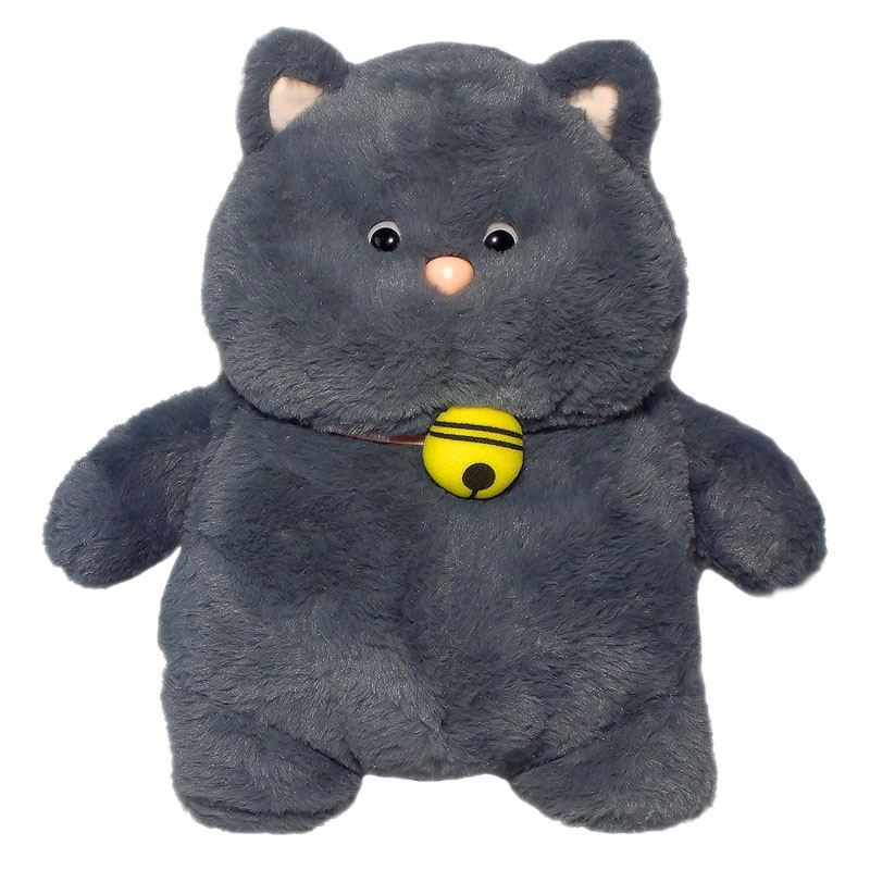 卡通猫咪形象,内里填充饱满,圆嘟嘟的面部五官呆萌写实,采用仿兔毛面料,手感顺滑
